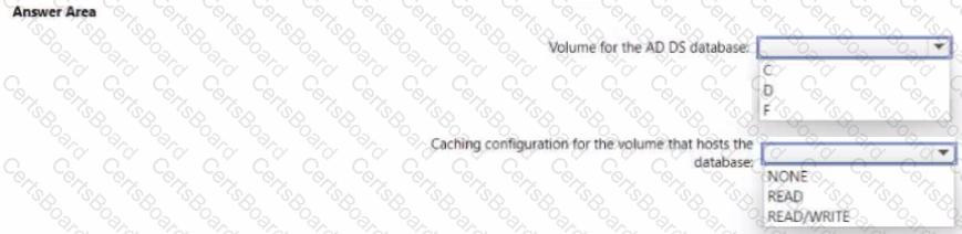 You plan w deploy an Azure virtual machine that win run Windows Server. The virtual machine will host an Active Directory Domain Services (AD DS) domain controller and a drive named f: on a new virtual disk.