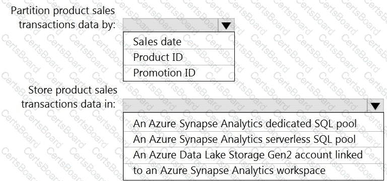 You need to design the partitions for the product sales transactions. The solution must meet the sales transaction dataset requirements.