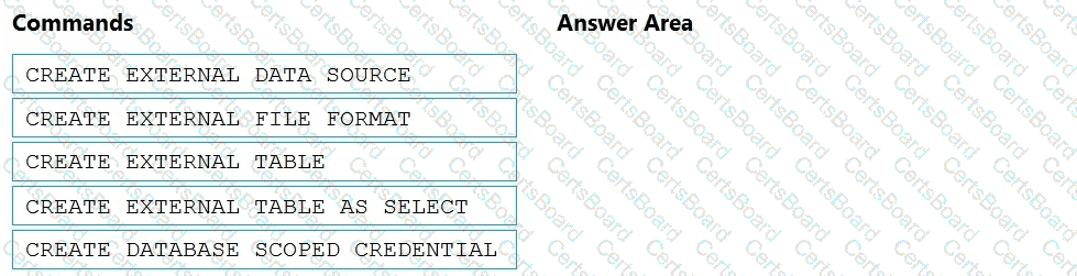 Which three Transaction-SQL DDL commands should you run in sequence? To answer, move the appropriate commands from the list of commands to the answer area and arrange them in the correct order.