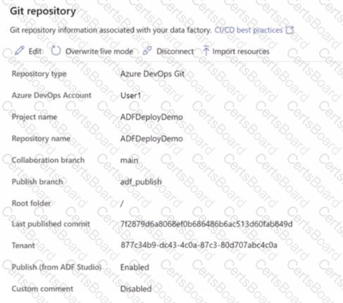 You have an Azure data factory that is configured to use a Git repository for source control as shown in the following exhibit.
