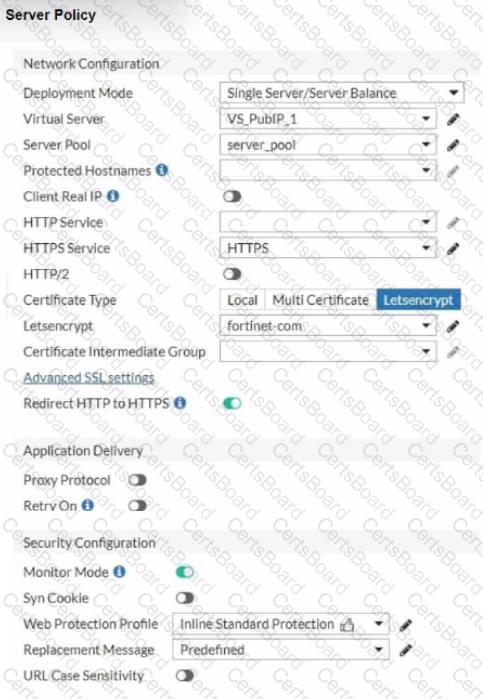 Based on the Server Policy settings shown in the exhibit, which two configuration changes will resolve this issue? (Choose two.)
