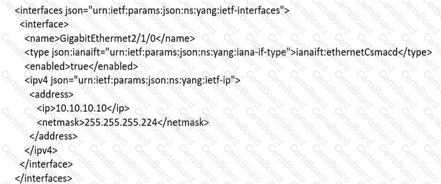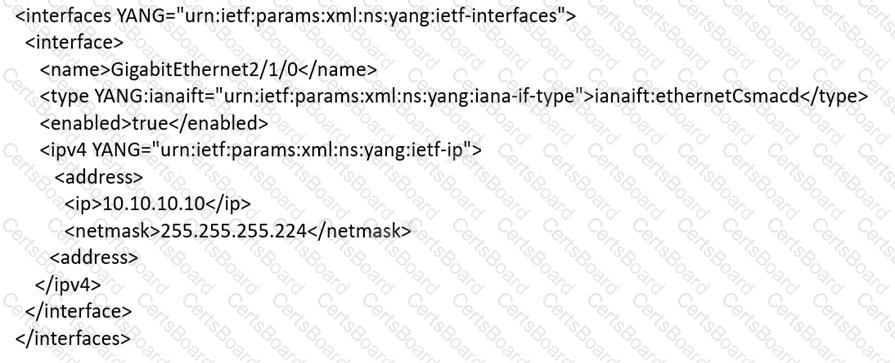 An engineer must use YANG with an XML representation to configure a Cisco IOS XE switch with these specifications: