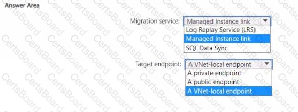 You need to recommend which service and target endpoint to use when migrating the databases from SVR1 to Instance1. The solution must meet the availability requirements.