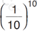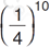 John is taking a test that has ten questions. Each question has four answer choices with only one correct answer. Which of the following expressions shows the probability that John could answer all ten questions correctly by randomly guessing the correct answers?