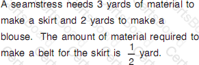 The seamstress made 2 complete outfits that include a blouse, skirt, and belt. How many yards of material were needed to make these outfits?