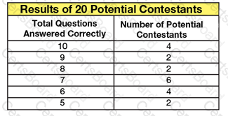 Producers of a popular quiz show asked potential contestants a series of 10 questions. The table below shows the numbers of questions answered correctly by the 20 potential contestants.
