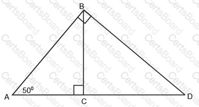If the measure of angle A is 50°, what is the measure, in degrees, of angle D?