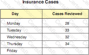 Conrad is required to review an average of 30 insurance cases each day during his five-day workweek. The table at the left shows how many cases he reviewed during the first four days.