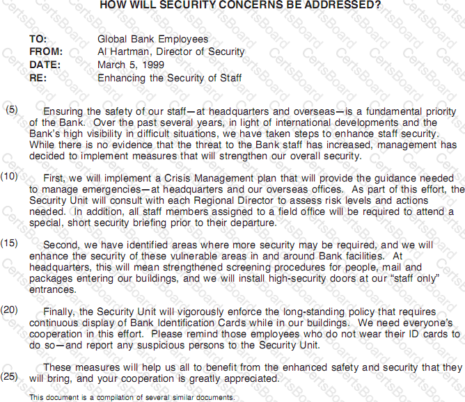 Which of the following phrases indicates that the Bank is trying not to upset the employees?