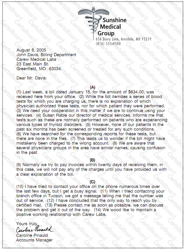 Sentence 9:Normally we try to pay invoices within twenty days of receiving them, in this case, we will not pay any of the charges until you have provided us with a clear explanation of the bill.