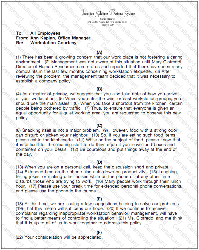 Sentence Management was not aware of this situation until Mary Ciofreddi, Director of Human Resources came to us and reported that there have been many complaints in the last few months concerning workstation etiquette.