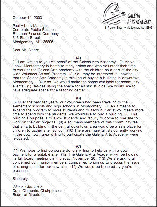 Sentence I am writing to you on behalf of the Galena Arts Academy.