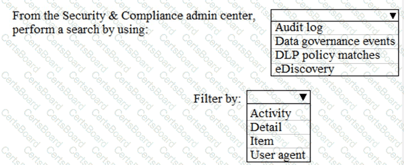 Which two settings should you use in the Microsoft Purview compliance portal? To answer, select the appropriate settings in the answer area.